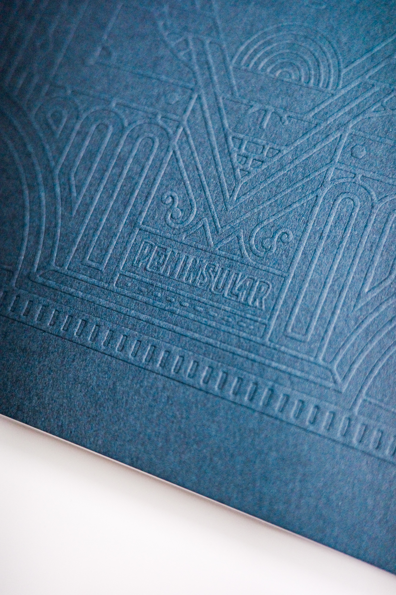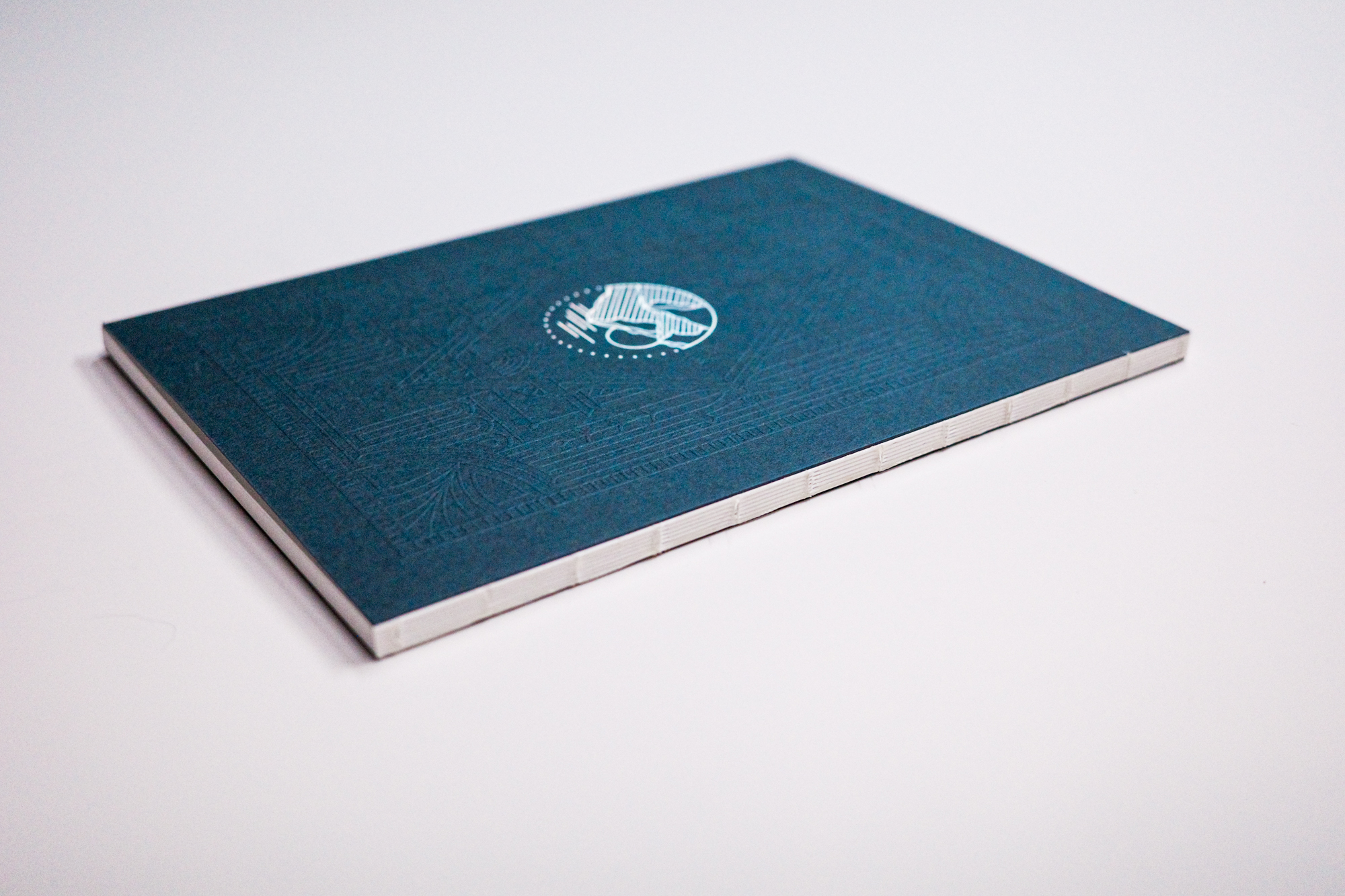 Caderno (165x230mm) de Lombada Exposta, com gravações em baixo Relevo, Termoestampagem a Azul metálico e 80 folhas Pautadas