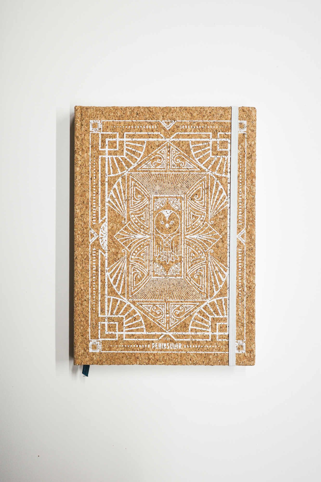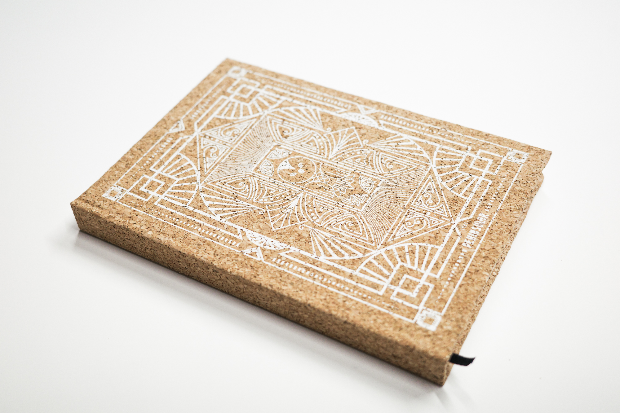 Caderno A5, forrado em Cortiça com impressão a branco em Serigrafia.